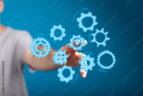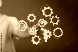 Abstract image of a hand interacting with gears, symbolizing teamwork, collaboration, and process optimization.