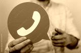 Person holding a WhatsApp logo. Customer service, communication, contact.