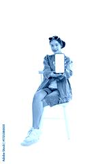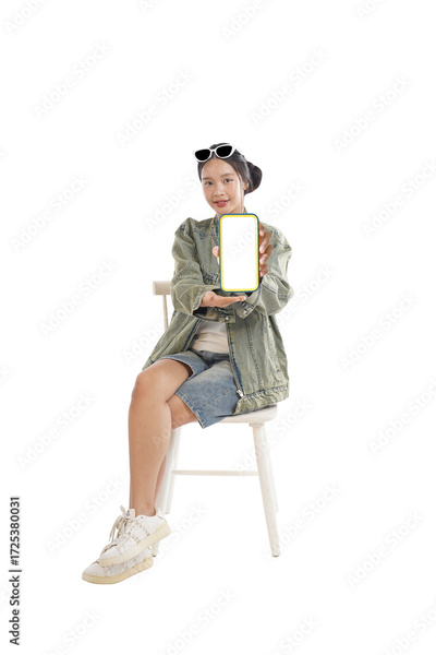 Digital Display with Casual Confidence: A youthful individual, showcasing a bright digital screen with a knowing smile, radiating an inviting, lifestyle-centric vibe and promoting technology.