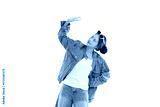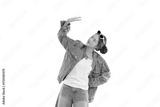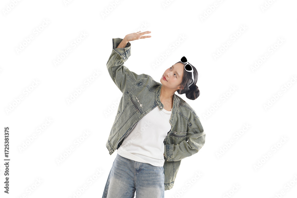 Stylish Young Woman Posing in Studio: A fashion-forward young woman strikes a pose, displaying her style and charisma with a modern look.