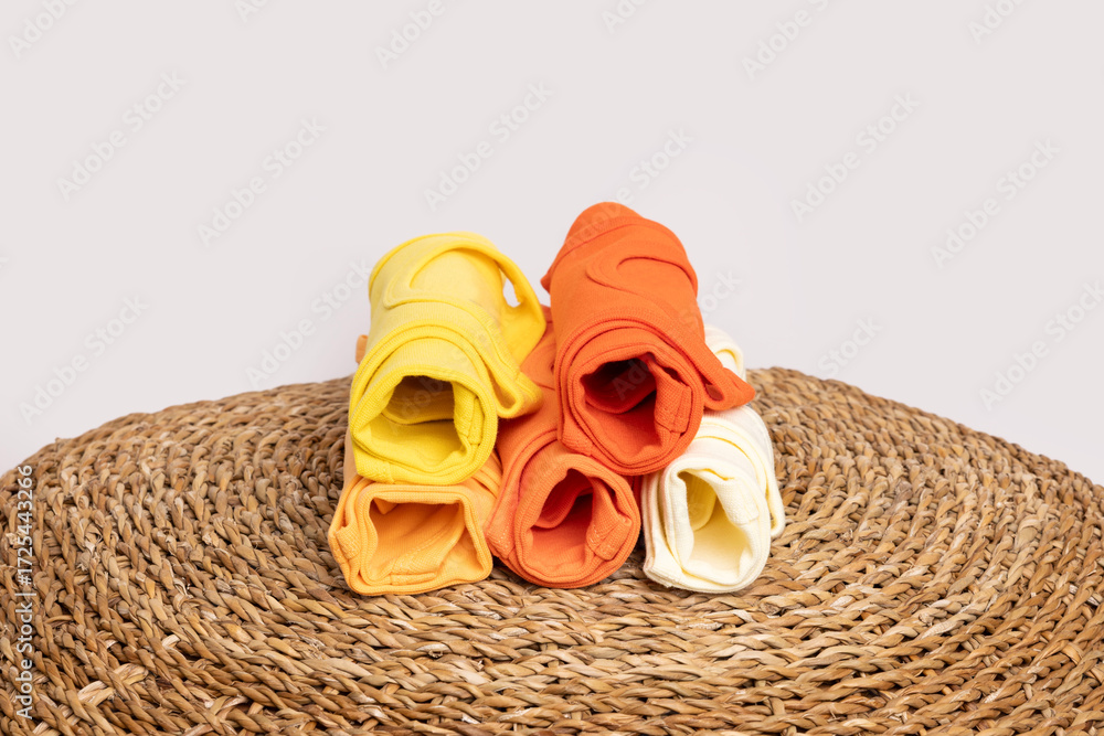 Baby clothes textile photo shoots. Baby clothes and sweaters.