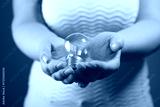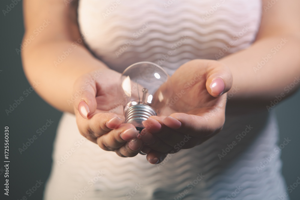 Woman holding a lightbulb in her hands. The concept of saving energy
