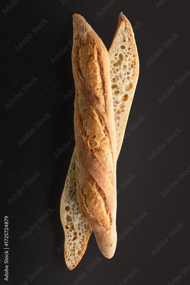 Crusty Baguette Slices On Dark Background Fresh Bakery Sourdough Bread Close-Up For Food Photography