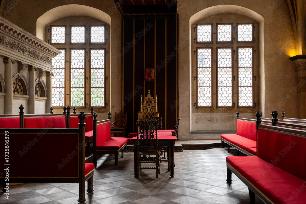 Coronation Hall with Golden Throne in Old Royal Palace Prague Castle.
