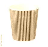 Ribbed cardboard disposable takeaway coffee cup with transparent background