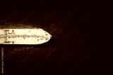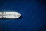 High aerial overhead view of a crude oil tanker traveling over the ocean with copy space