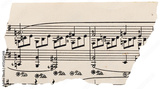 Piece of old vintage music sheet, decorative faded torn paper scrap with notes isolated for collage