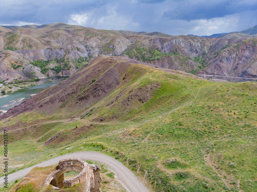 Galata Tower, Galata Bridge, Karakoy district and Golden Horn with motion speed light of passing ferry in the foreground at night istanbul - Turkey