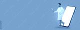 Medical professional actively using digital tablet in healthcare