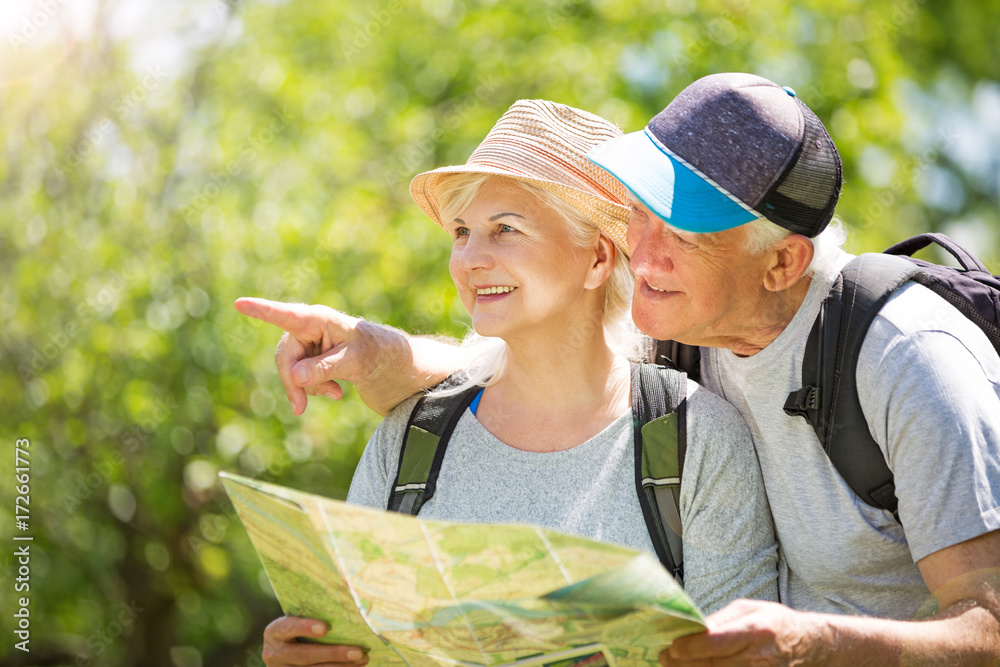 Senior couple hiking