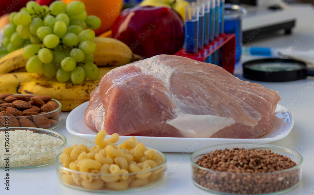 Food Quality Testing: Microscope and Fresh Fruits and Vegetables