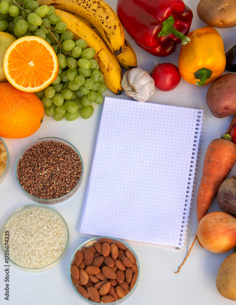 Healthy Meal Planning: Notebook for Recipes Surrounded by Fresh Produce