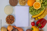 Healthy Meal Planning: Notebook for Recipes Surrounded by Fresh Produce