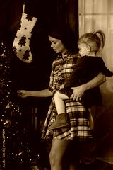 Mother and child decorating christmas tree at home