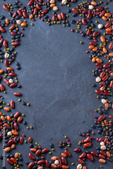 Variety of legumes, lentils, beans, plant based vegan protein source