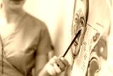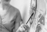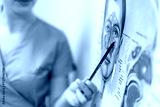 Medical lecture about anatomy. Doctor showing facial anatomy chart with a pointer in a medical office