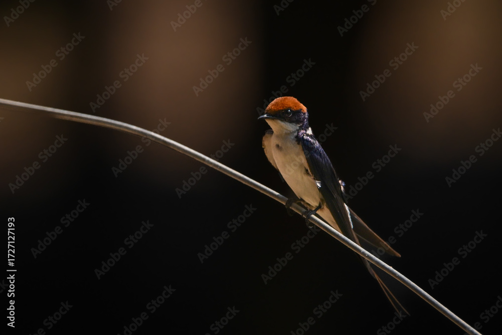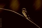 Wire-tailed swallow watching camera from diagonal wire