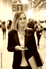 young beautiful businesswoman at a trade fair