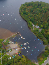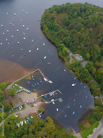 Aerial view of Balmaha Scottish village at Loch Lomond