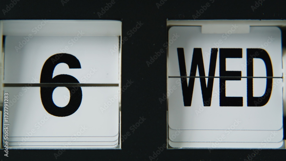 Flip clock changing date macro view. Retro calendar on flipclock showing numbers