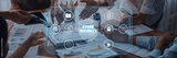 A business meeting focused on cyber security strategy, featuring charts and graphs, emphasizes team collaboration for effective digital protection and risk management. Trope