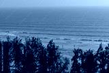 Coastal forest greenery on hillside with panoramic view of Cox’s Bazar Bangladesh beach and ocean background.