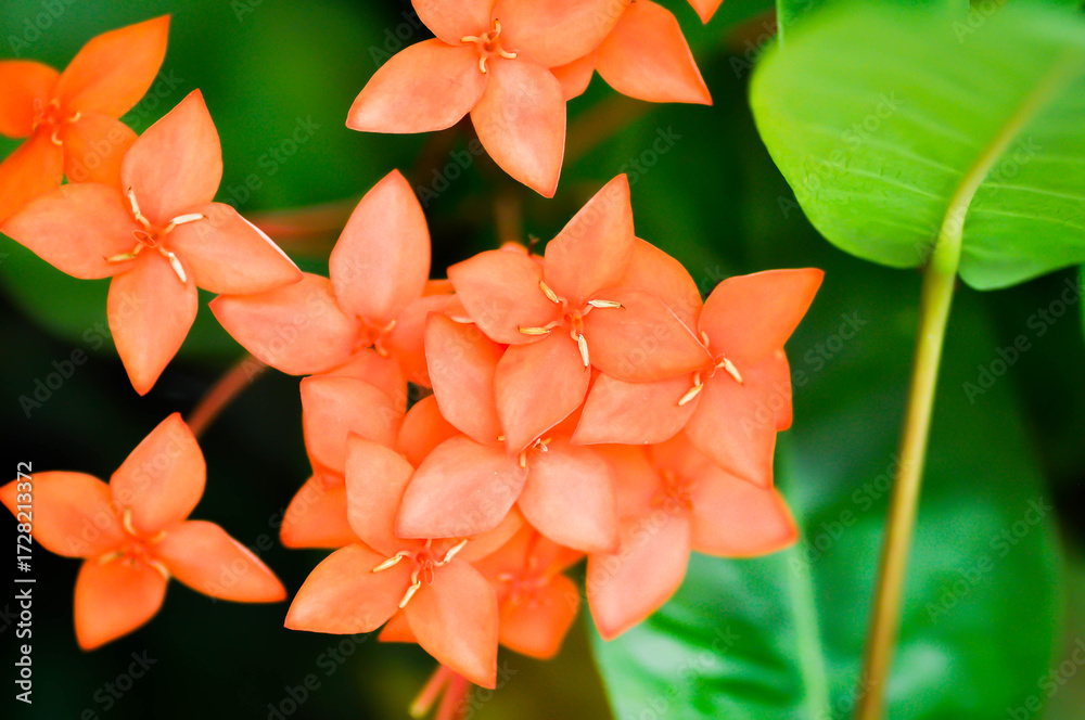 Ixora chinensis Lamk, Ixora spp or Zephyranthes or West Indian Jasmine and orange flower