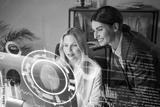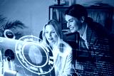 Biometric Security Analysis: Two Women Scientists Review Holographic Fingerprint Data In A Modern Office