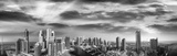 Aerial panoramic black and white view of Dubai Marina skyscrapers
