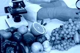 Meat and Food Quality Control Laboratory Testing with a Magnifying Glass