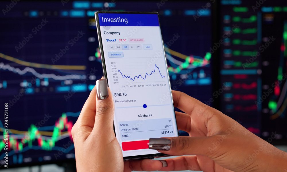 Businesswoman Analyzing Stock Market Data On Mobile Phone For Profit