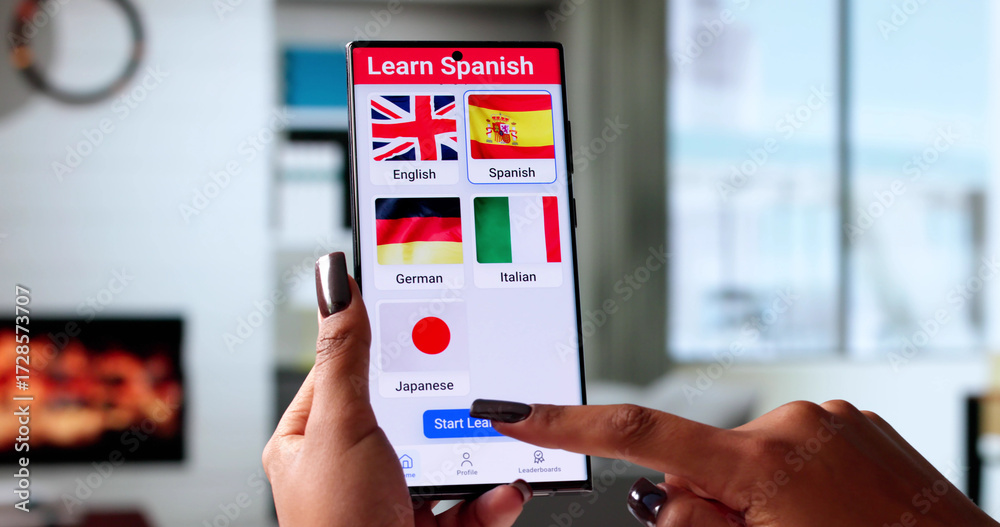 Smartphone App Helps Young Woman Study Spanish Grammar