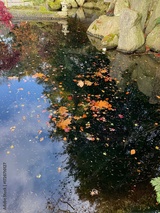 Colorful fallen leaves in pond at park