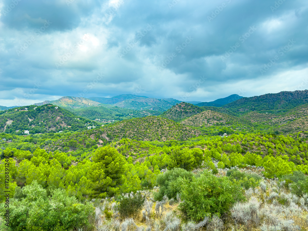 Lush green hills under a cloudy sky invite exploration and adventure in a serene natural landscape