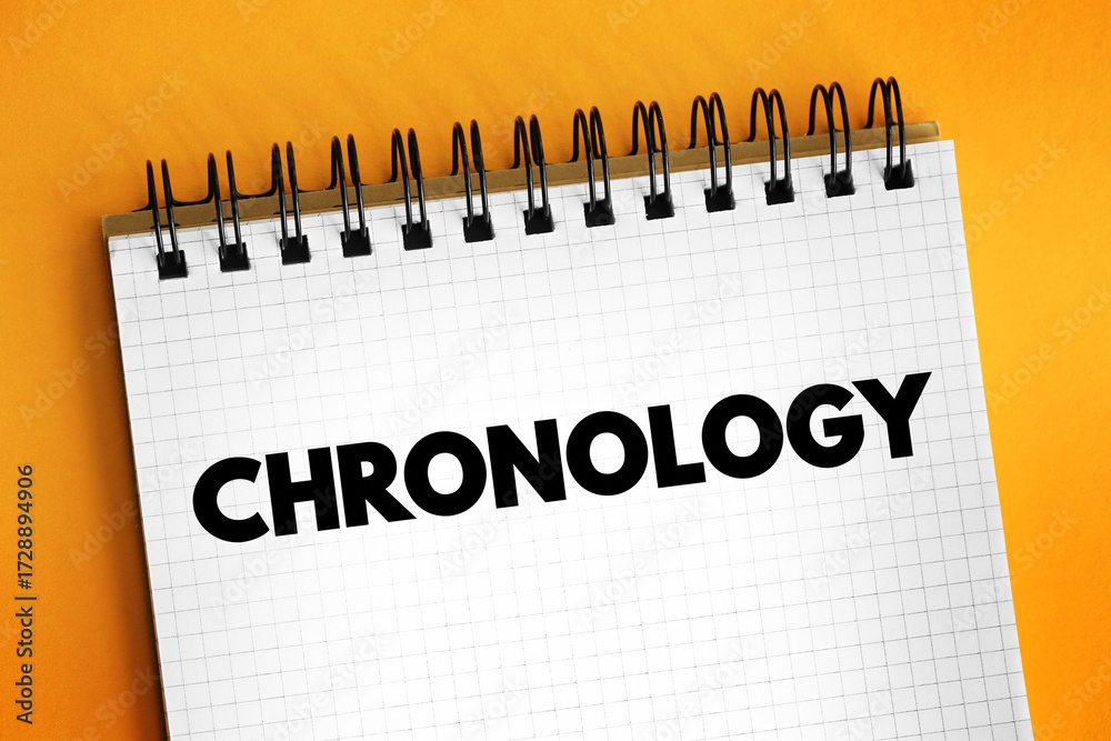 Chronology - science of arranging events in their order of occurrence in time, text concept on notepad