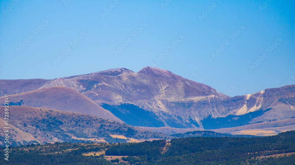 Panoramic mountain landscape with blue sky, Italian summer scenery