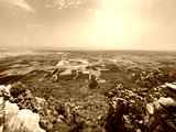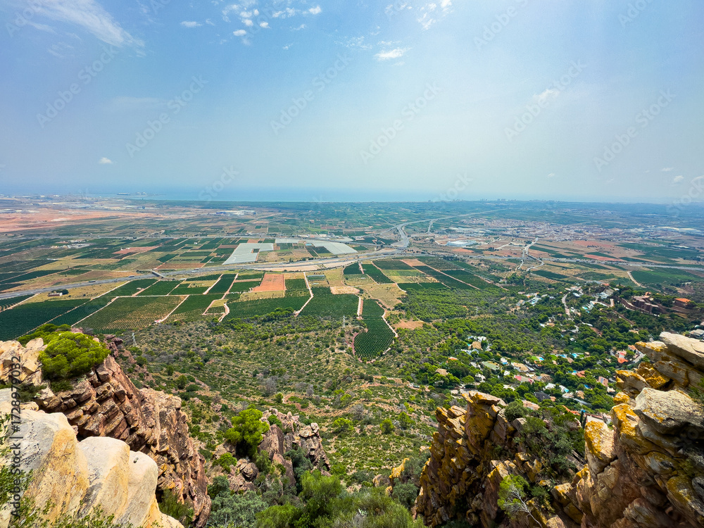 Beautiful panoramic view of the countryside and vineyards from a mountain peak on a sunny day
