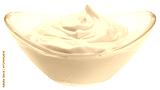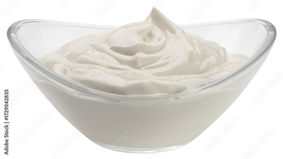 Sour Cream in glass bowl, mayonnaise, yogurt, isolated, full depth of field