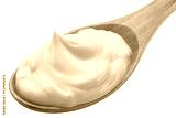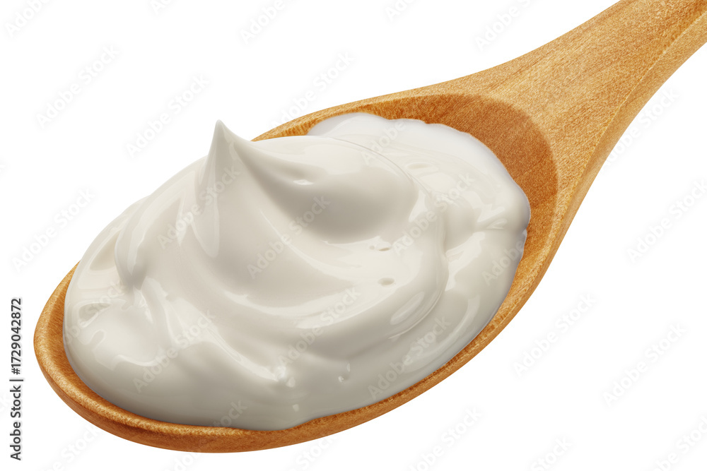 Sour Cream on wooden spoon, mayonnaise, yogurt, isolated, full depth of field