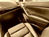 Modern car interior showcasing sleek design and comfortable seating with soft light filtering through the window