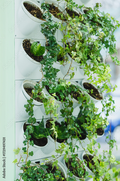 Beautiful vertical garden showcasing lush green plants in a modern urban setting during daytime, enhancing the fresh atmosphere