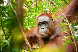 Orange Borneon orangutan Pongo pygmaeus portrait. Tanjung Puting National park, Indonesia