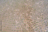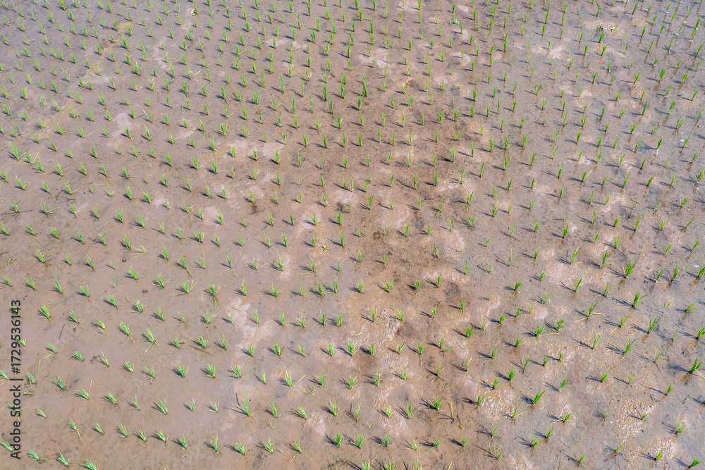 Drone flying over the rice plantation terrace on Java island, Indonesia