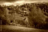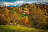 Autumn scenery with colorful deciduous trees on the hills, Romania