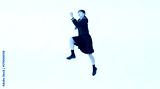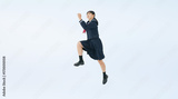 ジャンプするセーラー服を着た女子学生の切り抜き全身写真