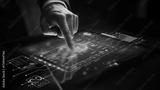 Futuristic Digital Interface with Business Data and Hand Interaction in a Dark Environment Highlighting Innovative Technology Trends