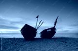 Łódz rybacka na bałtyckiej plaży w pięknych barwach zachodzącego słońca