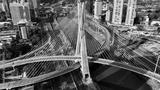 Suspension Bridge At Sao Paulo In Brazil. Downtown Cityscape. Cable Bridge. Urban Landscape. Suspension Bridge At Sao Paulo In Brazil. Metropolis District. Sao Paulo Brazil.