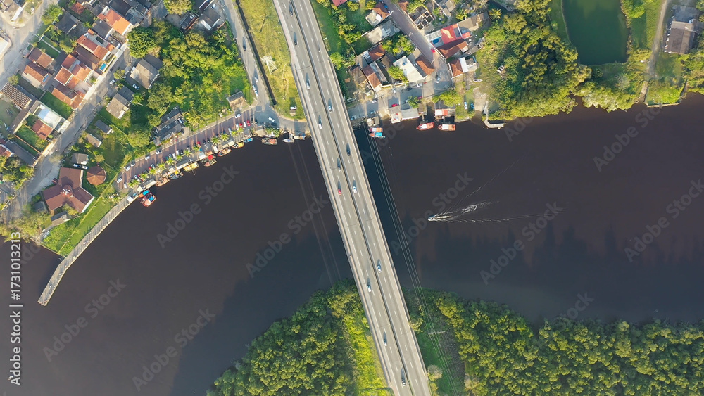 Itanhaem River At Itanhaem In Sao Paulo Brazil. Atlantic Forest Landscape. River Skyline. Tropical Travel. Itanhaem River At Itanhaem In Sao Paulo Brazil. Outdoor Scenery.