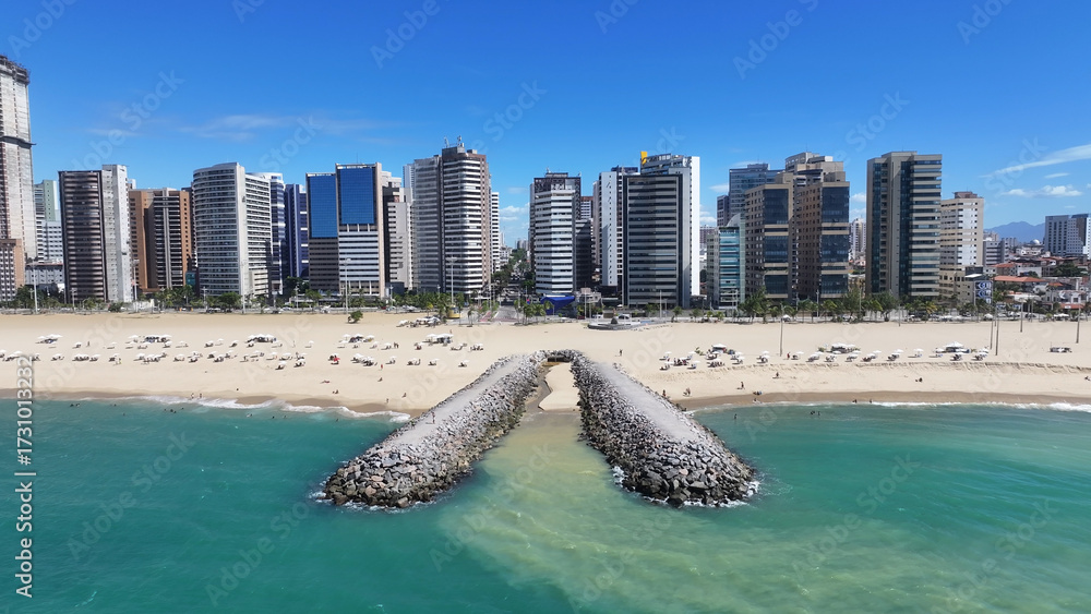Fortaleza Skyline At Fortaleza In Ceara Brazil. Downtown Cityscape. Urban Beach. Coastal Highrise Buildings. Fortaleza Skyline At Fortaleza In Ceara Brazil. Shore Avenue. Brazil Northeastern.